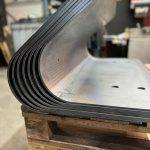 Gięcie blach na prasach krawędziowych bardzo często wykonujemy metodą „gięcia krokowego” lub inna nazwa „gięcia postępowego”. Ma to zastosowanie przy dużych promieniach gięcia, stożkach, zwężkach lub na innych niestandardowych gięciach. Krok gięcia, czyli odległość jednego gięcia od drugiego staramy wykonywać się możliwe jak najgęściej, aby kształt po gięciu przypominał taki jak ze zwijarki. Poniżej galeria naszych realizacji przedstawia wyżej opisaną metodę.